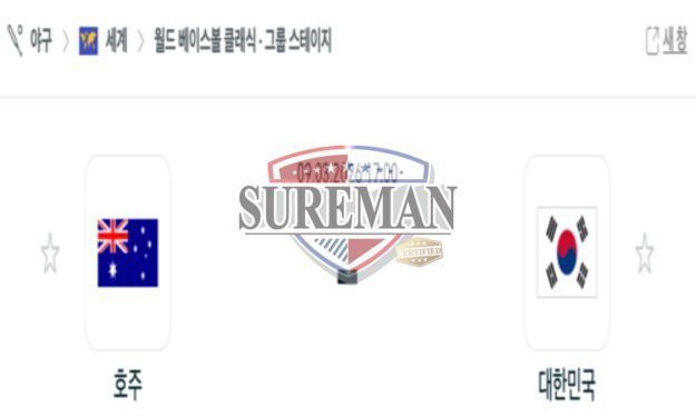 03월 09일 19:00 월드 베이스볼 클래식 호주 VS 대한민국