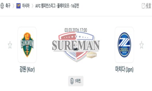 03월 03일 19:00 AFC 챔피언스리그 강원FC VS 마치다 젤비아