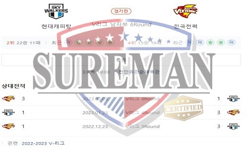 03월 09일 V리그 현대캐피탈 스카이워커스 한국전력 빅스톰 HOT한 경기를 잘난 슈어맨에서 직접 분석하였습니다. 백문불여일견 이라 하여 백번 잘났다고 얘기하지 않겠습니다. 한번 슈어맨의 분석글 참고하여 좋은 수익 거둬보시길 바라겠습니다.