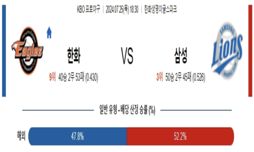 07월 25일 18:30 KBO프로야구 한화 vs 삼성 스포츠픽