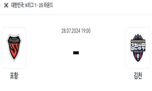 07월 28일 19:00 K리그1 포항 스틸러스 vs 김천 상무 FC 스포츠픽