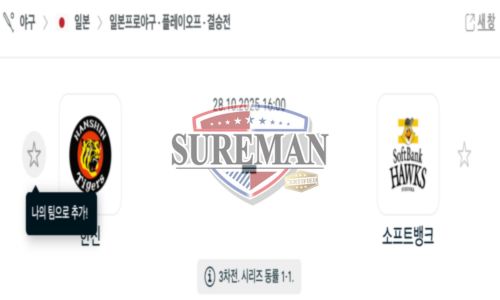 10월 28일 18:00 NPB 일본야구 한신 타이거즈 vs 소프트뱅크 호크스 스포츠 픽