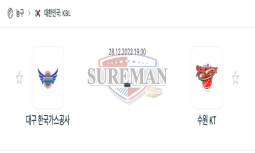 2023년 12월 28일 19:00 KBL 프로농구 대구 한국가스공사 vs 수원 KT 박진감 흘러넘치는 스포츠 분석, 슈어맨픽, 슈어맨무료픽입니다.