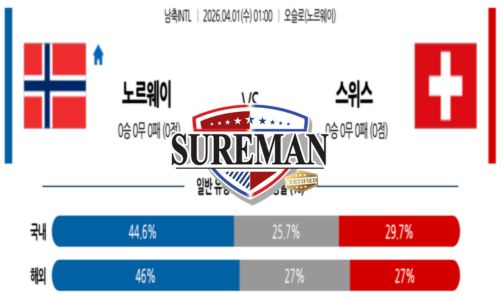 이번 경기는 노르웨이가 공략해야 할 지점이 명확한 매치업이다. 스위스는 수비 라인 간격 유지에서 불안이 드러나고 있고, 특히 전진 수비 이후 뒷공간 커버가 늦어지는 장면이 반복되고 있다. 외데가르드가 이 타이밍을 활용해 스루 패스를 공급하면, 홀란드의 침투와 곧바로 맞물리며 결정적인 찬스로 이어질 가능성이 높다. 여기에 슈옐데루프의 안쪽 움직임까지 더해지면 수비는 중앙과 측면 사이에서 균형을 잃을 수 있다. 전술 상성과 공격 완성도를 고려하면 노르웨이가 주도권을 잡고 승부를 가져갈 가능성이 높다.