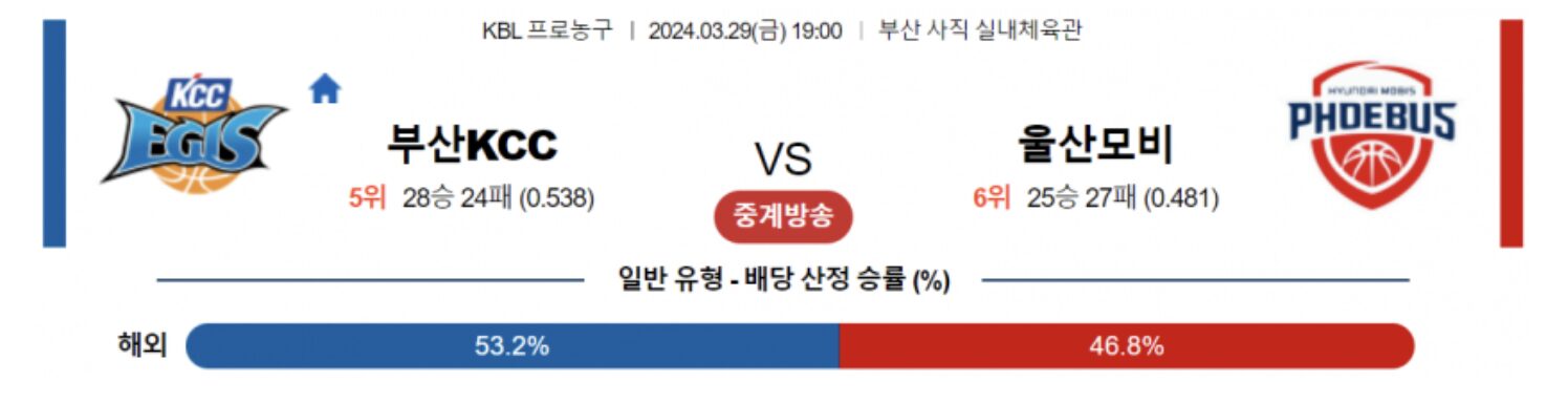 3월 29일 19:00 KBL 부산 KCC vs 울산모비스 스포츠 픽