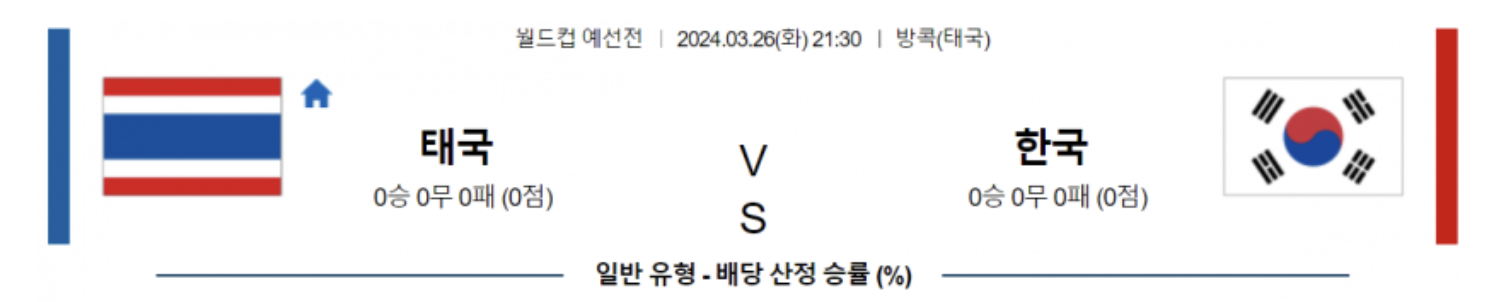 3월 26일 21:30 월드컵 예선 태국 vs 대한민국 스포츠 픽