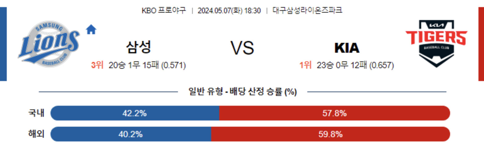 5월 7일 18:30 KBO프로야구 삼성 vs 기아 스포츠 분석