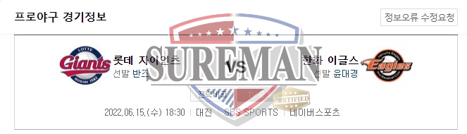 6월15일 KBO 국내야구 롯데자이언츠 한화이글스 분석