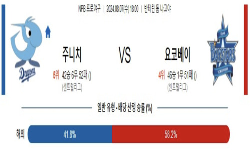 8월 7일 18:00 NPB일본야구 주니치 vs 요코하마 스포츠픽