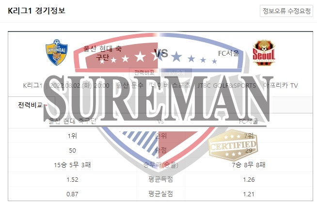 8월2일 K리그 울산현대축구단 FC서울 분석