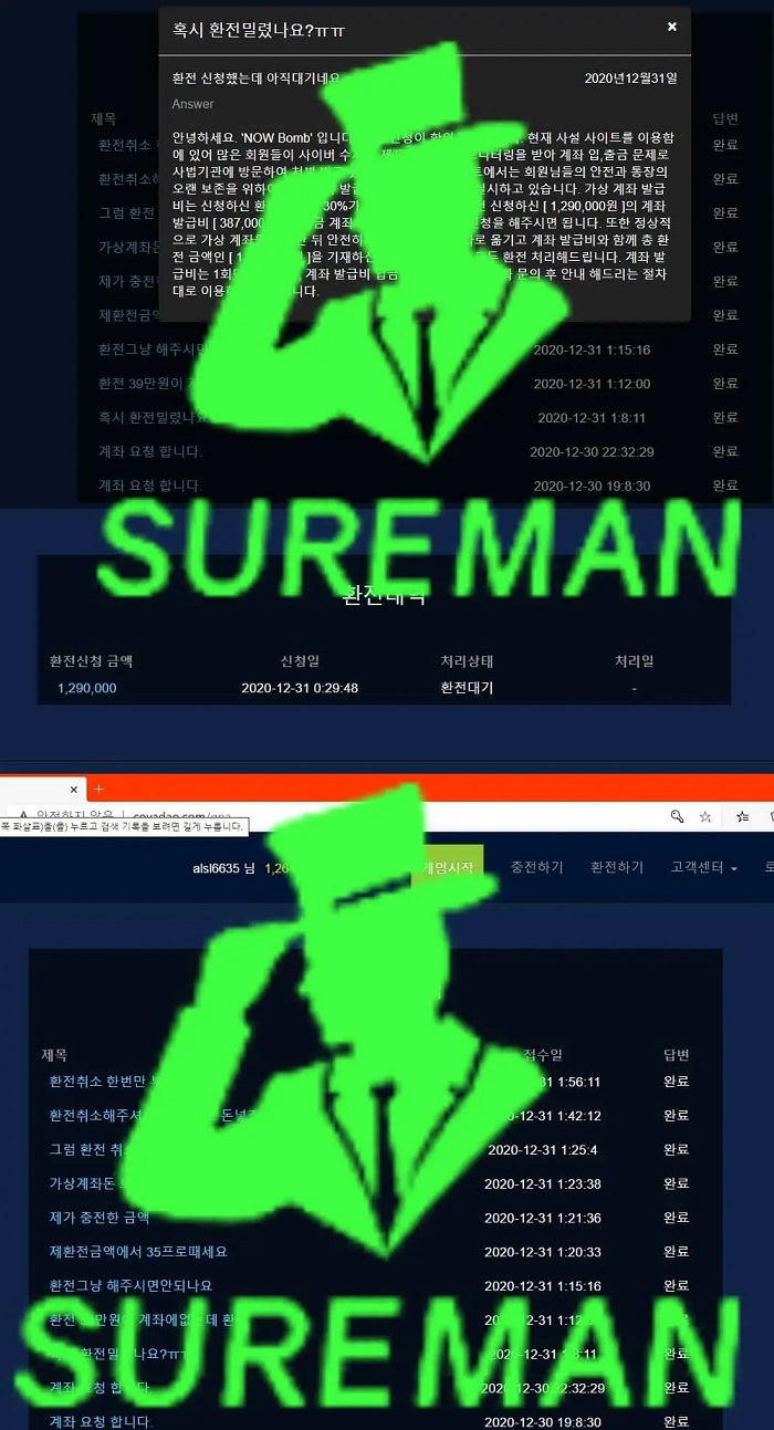Nowbomb 먹튀사이트 슈어맨 완벽하게 먹튀 검거완료