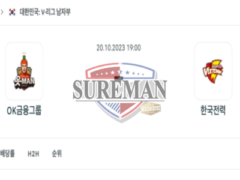 2023년 10월 20일 19:00 V-리그 프로배구 남자 OK금융그룹 vs 한국전력 파이팅 넘치는 분석