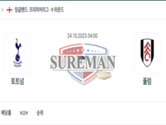 2023년 10월 24일 04:00 EPL 프리미어리그 토트넘 vs 풀럼 골 넣는 손흥민 스포츠 분석,슈어맨픽, 슈어맨무료픽입니다. 안녕하세요, 여러분. 오늘은 토트넘이 풀럼을 상대로 하는 경기에 대해 이야기해보려 합니다. A매치 휴식기가 끝나고 바로…