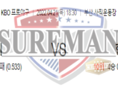 4월 21일 KBO 분석 롯데 한화 스포츠분석 슈어맨 슈어맨 스포츠가족방이 리뉴얼 됐습니다. 슈어맨 스포츠가족방 입장은 슈어맨 홈페이지에서 가족방 배너를 클릭하시면카카오톡 가족방으로 입장됩니다. 스포츠가족방에서는 스포츠정보 및 스포츠픽이 무료로 제공되고 있사오니 많은…